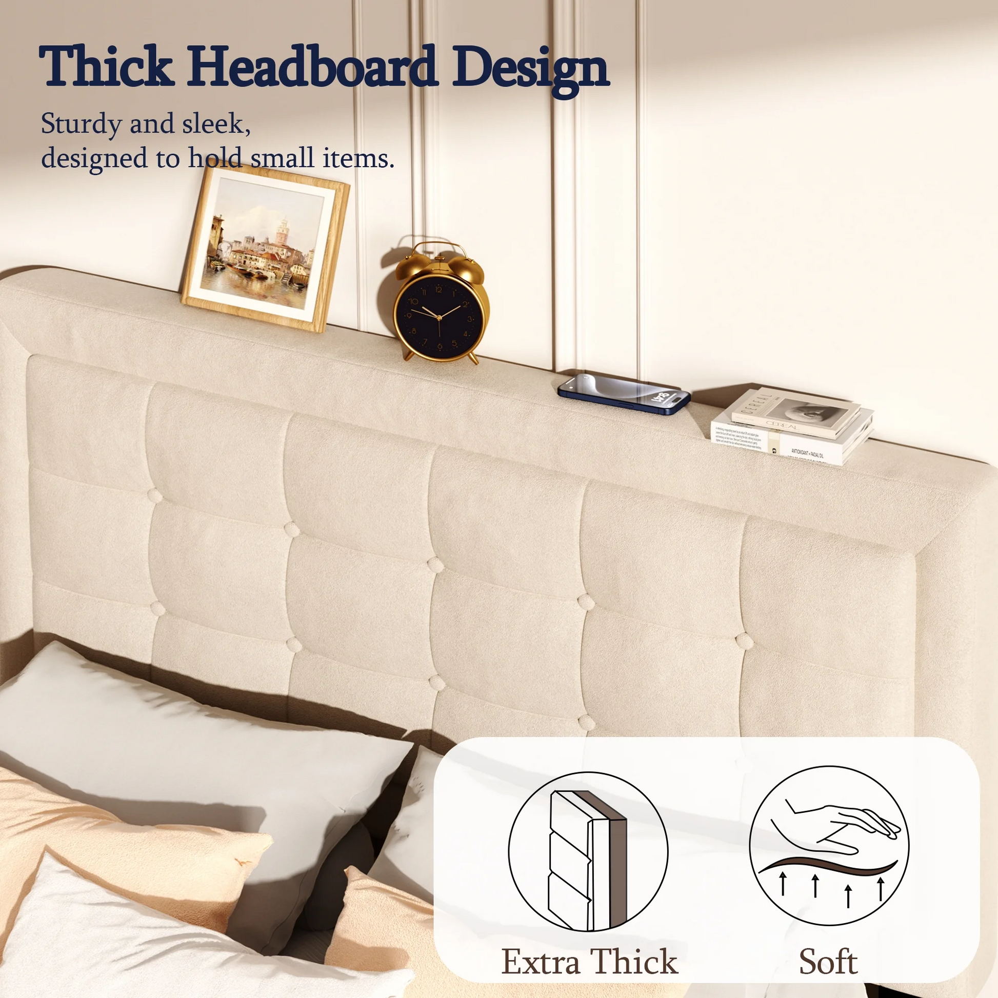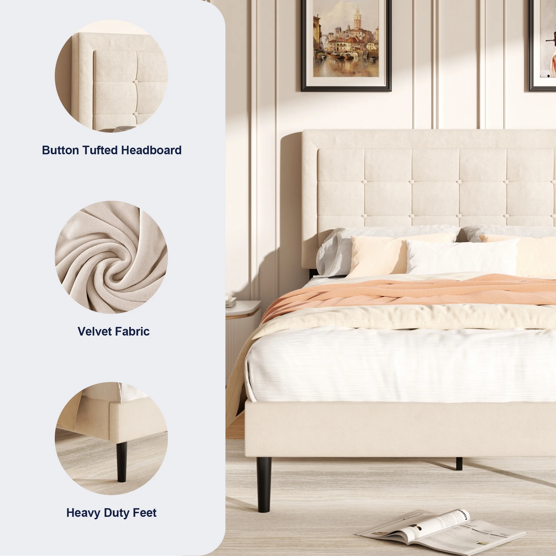 VIPLOV Bed Frame with Button Tufted Headboard, Linen Fabric Upholstered Platform Bed Frame, Mattress Foundation with Wood Slat Support, Easy Assembly, No Box Spring Needed