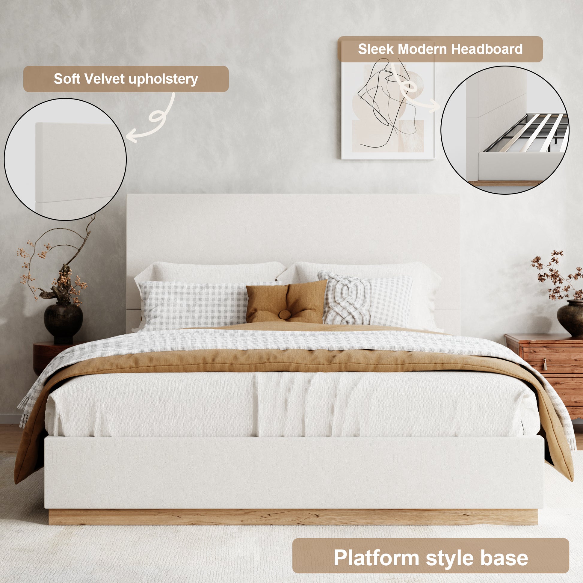 VIPLOV Bed Frame with Headboard, Upholstered Bed Frames,with Enclosed Wood Base, Metal Structure & Wood Slats Support,No Noise, Easy Assembly,