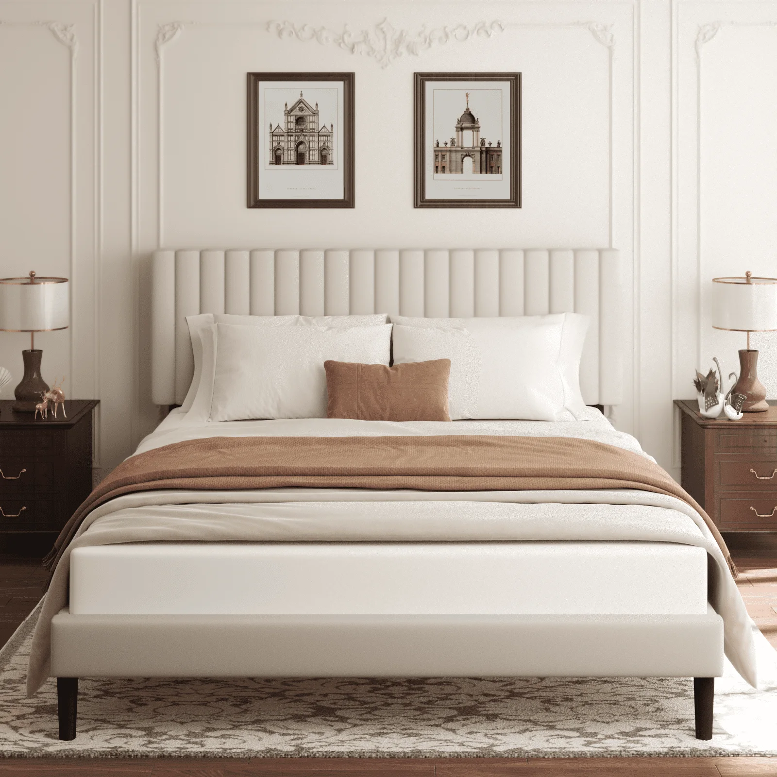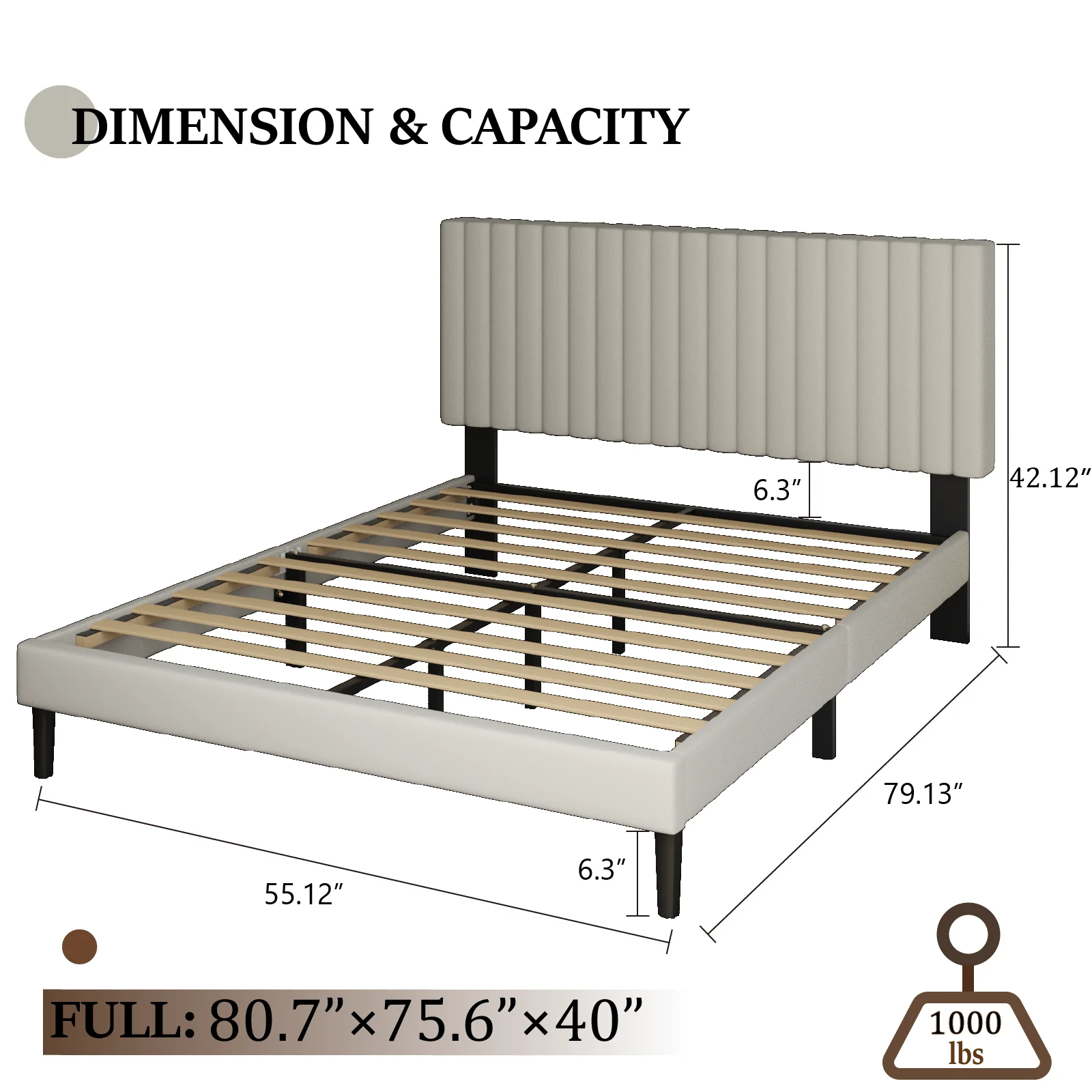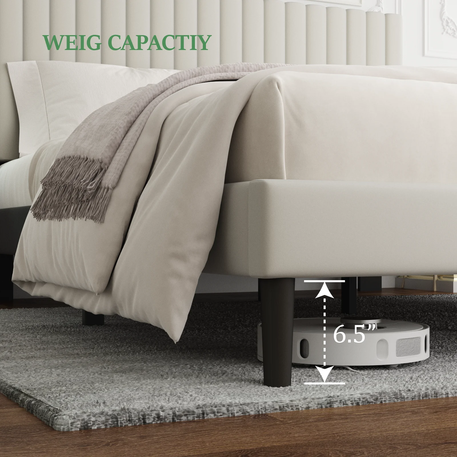 Comfortable and Elegance: The vertical channel tufted headboard is wrapped in smooth velvet and built-in soft foam, introducing a touch of elegance to any bedroom.
